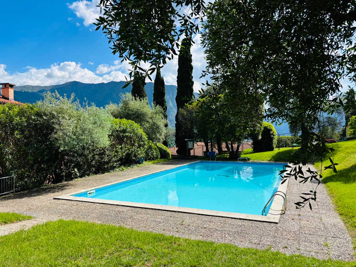 Use of shared (unheated) swimming pool and large communal gardens, with stunning background of Lake views.